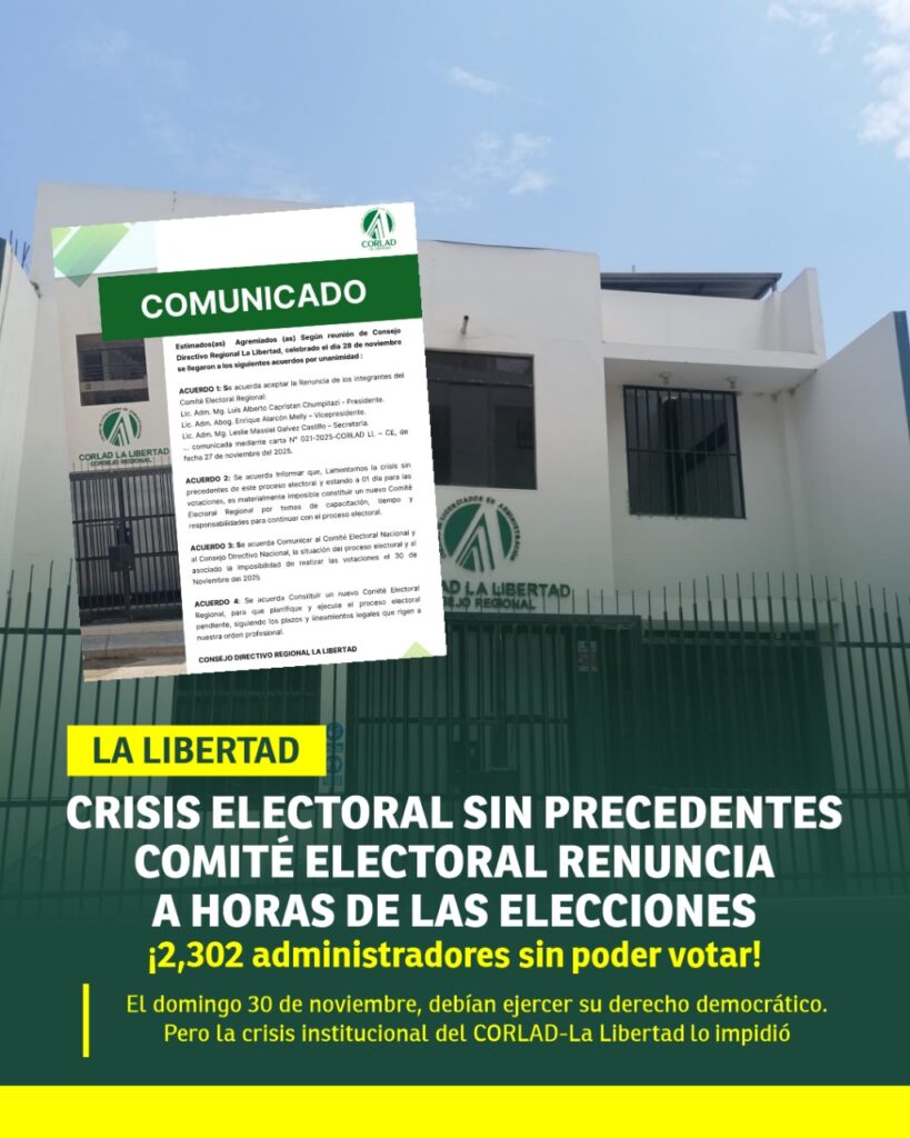 El domingo 30 de noviembre, deberían ejercer su derecho democrático. Pero la crisis institucional del CORLAD – La Libertad les impidió.