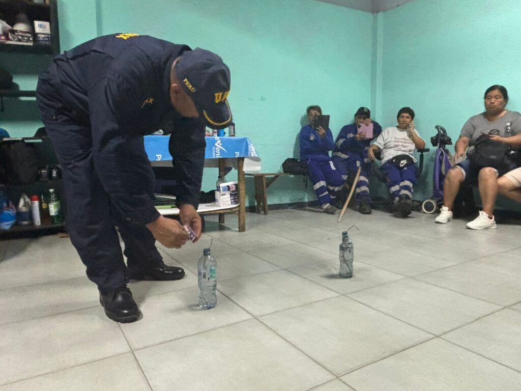 La capacitación fue gestionada por el área de Imagen Institucional y es ofrecida considerando la situación que se vive en La Libertad por el tema de extorsiones y la posibilidad del hallazgo de artefactos explosivos que se dejan o arrojan en los frontis de viviendas o establecimientos comerciales y no explotaron.