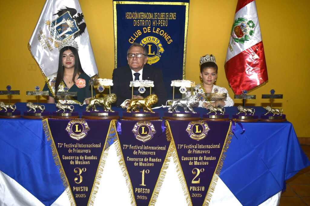 El Club de Leones de Trujillo puso fin a las celebraciones del 73° Festival Internacional de Primavera con una concurrida y solemne ceremonia de premiación. El evento sirvió para felicitar y condecorar a los ganadores de los concursos de carros alegóricos y bandas de músicos, contando con la presencia de autoridades políticas, civiles y empresariales que se sumaron al reconocimiento.