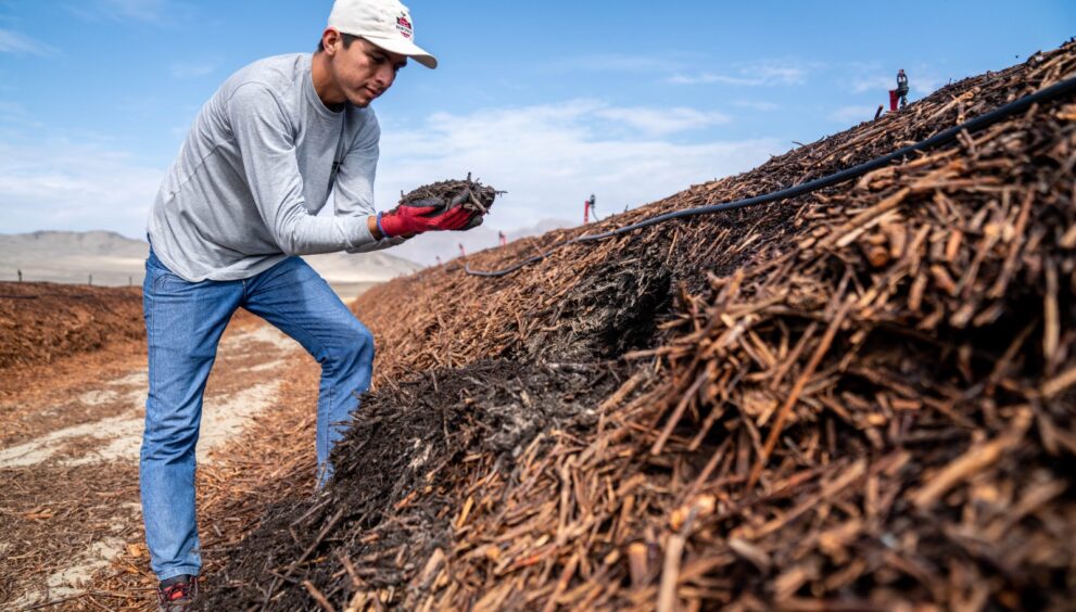 - Producción de compost. Se cuenta con 9 hectáreas de composteras activas, desde 2021 al 2024 se produjeron 12, 027 toneladas a partir de la broza de poda de plantas de arándano. Este fertilizante natural es utilizado en los campos de cultivo como en el programa Huertos Escolares, mejorando la calidad del suelo y cerrando el ciclo de aprovechamiento de residuos orgánicos.