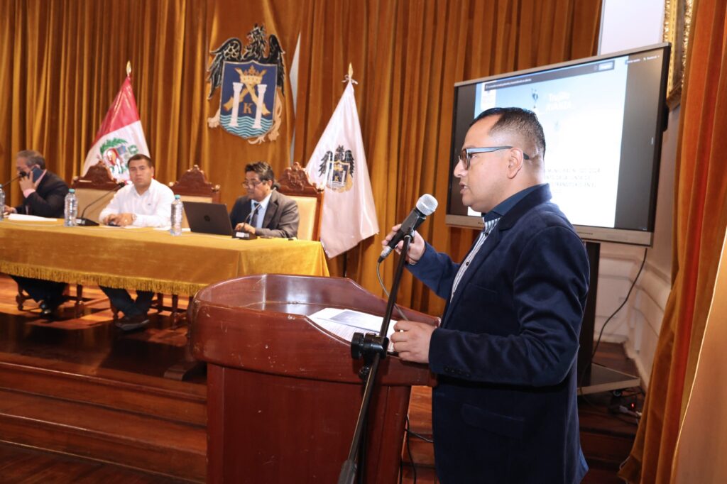 La sesión fue conducida por el regidor Christian Lujan Pajares, en representación del alcalde Mario Reyna Rodríguez, y allí se atendió el expediente N° 53971-2024-MPT, generado por la Junta de Delegados Vecinales Comunales Transitorios de Alto Trujillo.