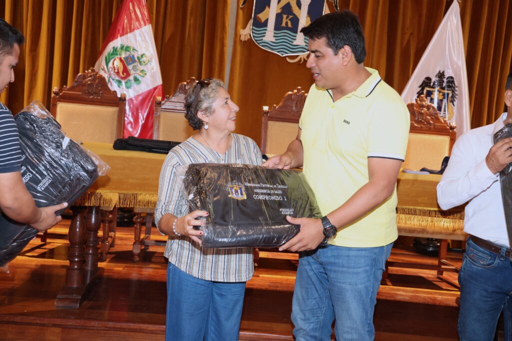 La autoridad les entregó indumentaria a utilizar en sus labores diarias: polos manga larga, gorras tipo safari, chaleco, maletín, bloqueador solar y un rotafolio para el cumplimiento de la meta: “Mejora del estado situacional y de la salud de las gestantes y niños hasta 12 meses de edad, para la prevención de la anemia”.
