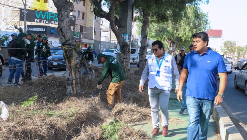 Durante su recorrido, la autoridad edil constató las acciones de desarenado, barrido, retiro de montículos de basura, desmonte, maleza y grass seco, habilitando las bermas para el sembrado de nuevo césped natural y plantas ornamentales. La nueva brigada de auxiliares contratados también realiza labores de poda de ramas frondosas que obstruyen la visión de los conductores en la zona.