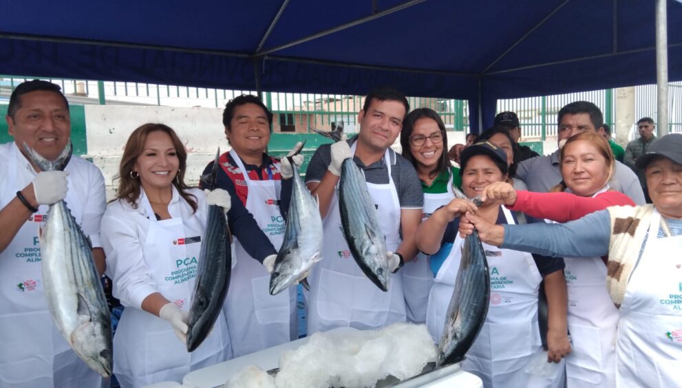 En el marco del Programa de Complementación Alimentaria el Ministerio de Desarrollo e Inclusión Social entregó 2.5 toneladas de pescado Bonito a más 30 ollas comunes y comedores populares de Alto Trujillo, distrito de La provincia de Trujillo en la región La Libertad.