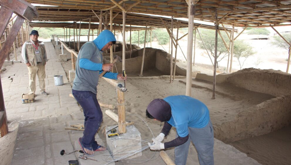 • Los trabajos comprendieron la renovación de coberturas protectoras y el acondicionamiento del circuito de visita en la Sala de los Depósitos y el Templo de los Frisos.El Ministerio de Cultura, a través de la Unidad Ejecutora 005 Naylamp – Lambayeque (UE005), ejecutó importantes trabajos de conservación y acondicionamiento en el complejo arqueológico Chotuna-Chornancap, ubicado en el distrito de San José, sitio históricamente vinculado a la tradición oral conocida como la Leyenda de Ñaymlap, símbolo cultural de la región.El director ejecutivo de la UE005, Carlos Wester La Torre, informó que se realizaron labores de conservación preventiva y acondicionamiento de la arquitectura del sitio arqueológico.“Seguimos priorizando las mejoras en nuestros sitios arqueológicos, a fin de garantizar una adecuada experiencia a los visitantes locales, nacionales e internacionales para que conozcan sobre la cultura, la historia y los pueblos que se desarrollaron en esta parte del Perú”, refirió Wester.Por su parte, el director del Museo de Sitio Chotuna-Chornancap, Marco Fernández Manayay, señaló que el servicio de mantenimiento se realizó especialmente en dos monumentos arqueológicos de época Lambayeque: la Sala de los Depósitos, un área administrativa donde se recibía el tributo de la poblacióny el Templo de los Frisos, un espacio ceremonial que conserva relieves polícromos.Los trabajos, que comenzaron el pasado 2 de junio, incluyeron la instalación de paravientos, protección de coberturas, construcción de muros de contención en ambas estructuras, así como el reemplazo de pasamanos de bambú, mejora del piso peatonal y renovación de paneles informativos.“El proyecto se desarrolló en dos etapas, cada una con una inversión aproximada de 18 mil soles, y tuvo una duración de tres semanas”, explicó Fernández.El director del museo también destacó que se gestionó el mantenimiento de las áreas y estructuras, y que estas acciones se enmarcan en la preparación para la próxima temporada alta de visitantes en Lambayeque, en la que se espera una mayor afluencia de delegaciones escolares y turistas de diversas regiones del país.
