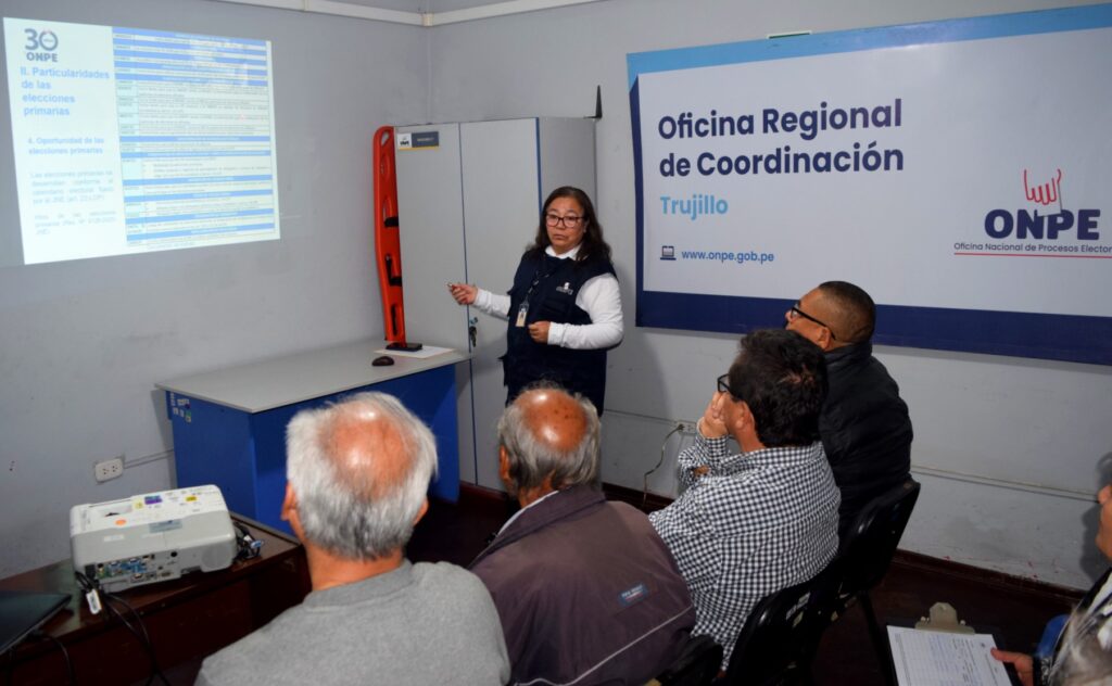 La ONPE, a través de la Oficina Regional de Coordinación (ORC) Trujillo, capacitó a los comités provinciales de diversos partidos políticos de la provincia de Trujillo, sobre las normas que regirán durante las elecciones primarias, proceso en el que se elegirán a los candidatos para las Elecciones Generales 2026.