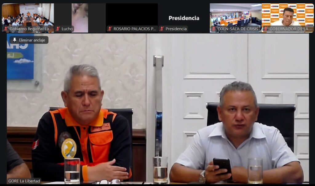 Fue ayer, después de declararse el estado de emergencia por 60 días en 246 distritos de 14 regiones del país, en sesión virtual para coordinar acciones que ayuden a mitigar riesgos por lluvias, al intervenir desde Trujillo y donde también participó la gobernadora Joana Cabrera, que está en Lima realizando gestiones en favor de La Libertad.