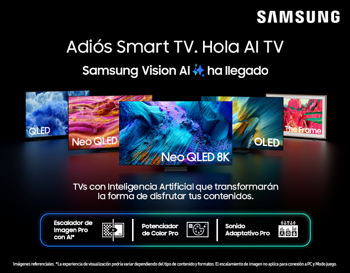 Adiós Smart TV, Hola AI TV. Pantallas OLED y QLED se unen al poder de la Inteligencia Artificial en una experiencia inmersiva sin precedentes, donde podrás transformar la forma de disfrutar los contenidos.