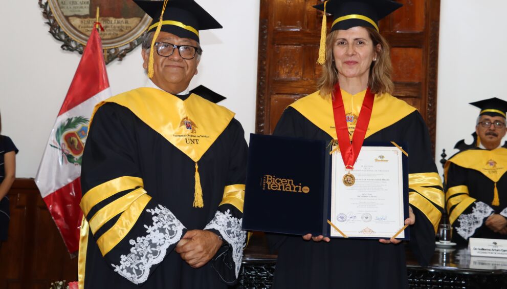 En una ceremonia realizada esta mañana en el emblemático Paraninfo Institucional, la Universidad Nacional de Trujillo (UNT) otorgó el grado de Doctora Honoris Causa a la Dra. María de las Nieves Sanz Mulas, docente de Derecho Penal en la Universidad de Salamanca, España. Este reconocimiento fue concedido por su destacada trayectoria profesional y sus significativos aportes en el ámbito jurídico a nivel internacional.